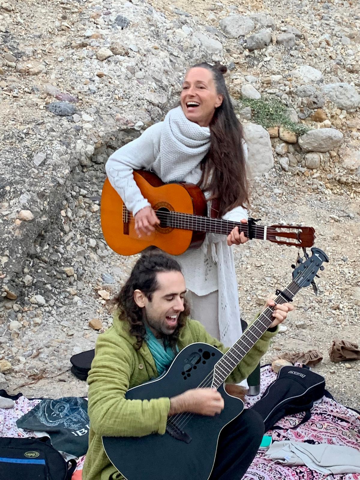 Junto a Francisco, pareja de Beatrice y percusionista, ofrecen sesiones de kirtan llenas de emoción y energía.
