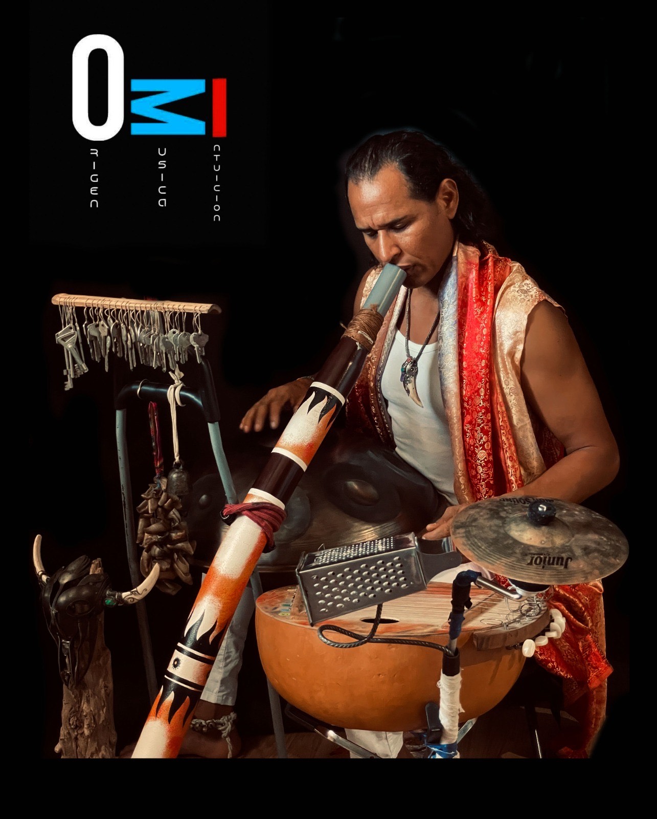 OMI: origen / música / intuición (instrumentos hang drums, didgeridoo, otros instrumentos vibratorios) es un performance acerca de los sonidos y la vibración que es la energía que mueve este universo.