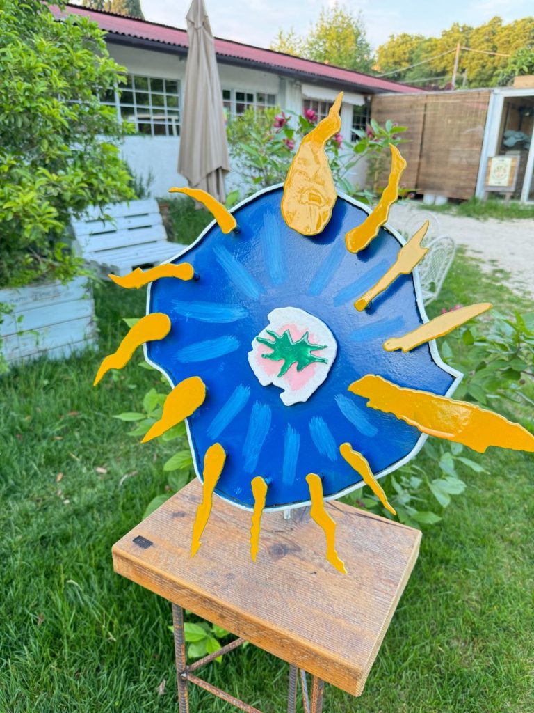 A través de dibujos creados por niños y transformados en esculturas de hierro por el herrero Jonata Bertozzi, los microorganismos toman forma y se convierten en un mensaje lleno de significado.